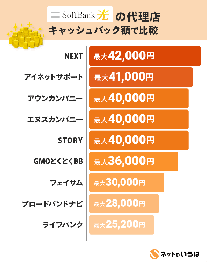 他社光回線からソフトバンク光に乗り換える場合、NEXTからもらえるキャッシュバックは減額されます。