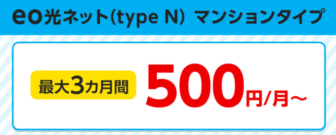 - eo光(type N) マンションタイプ スタートキャンペーン(3ヶ月間)