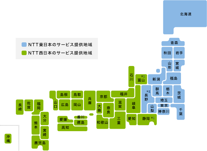 NTTが自社で敷設した回線を使っており、フレッツ光の提供地域は全国に及びます。