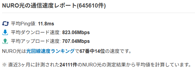 NURO光と同じ回線経路を使用しているため、速度に違いはありません。