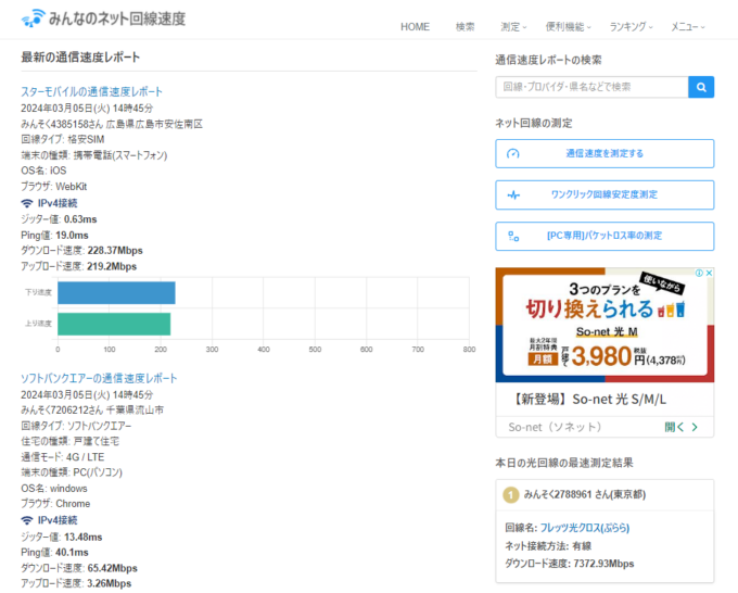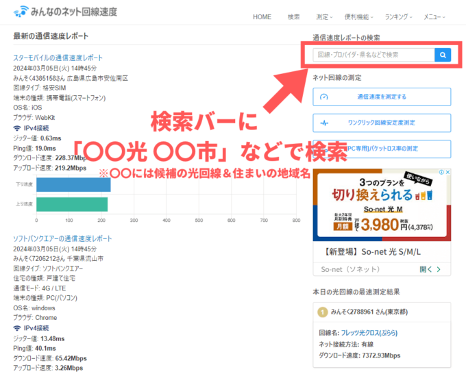 STEP7:「みん速」で候補の光回線の速度をチェックする