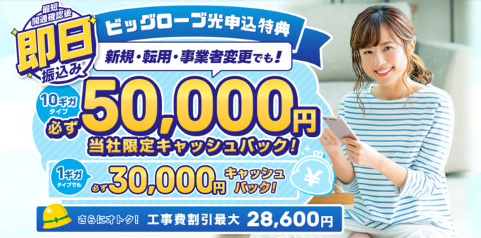 ネットの申し込みのみで適用されるキャッシュバックを選択し、お得に申し込みしましょう。